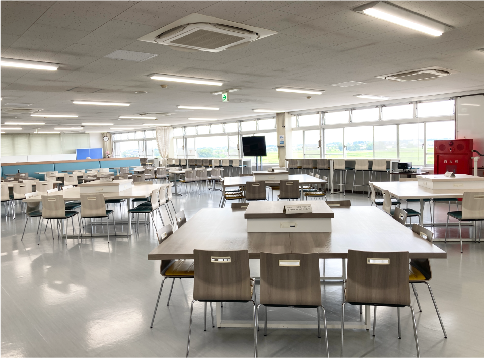 見晴らしのよい広々とした食堂と休憩スペースにはフリーWi-Fiも完備し、飲料やアイス、軽食の自販機もございます。